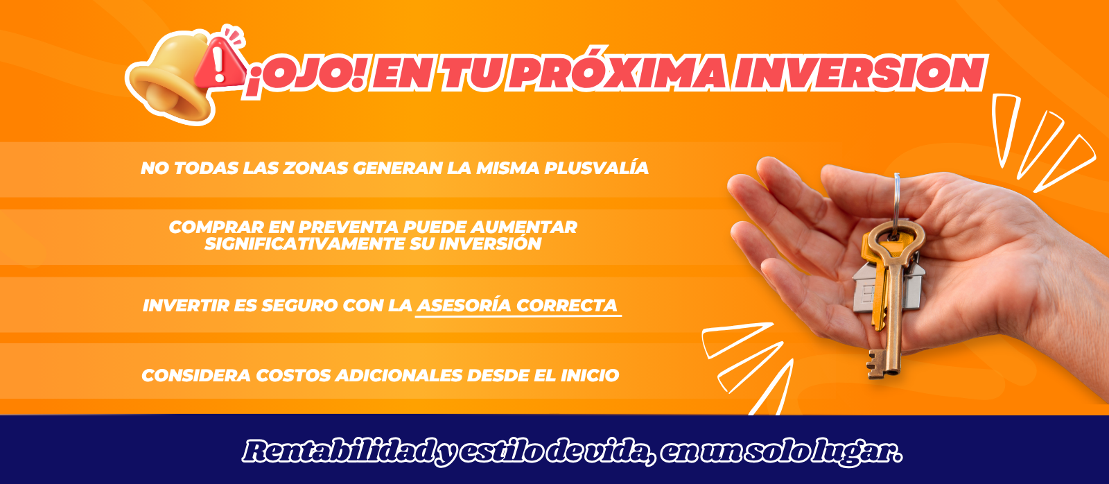México es un país diverso. Mientras algunas zonas tienen alta plusvalía y demanda constante, otras pueden tardar años en desarrollarse. Elegir la ubicación correcta es más importante que el precio. - Comprar en preventa puede multiplicar su inversión
